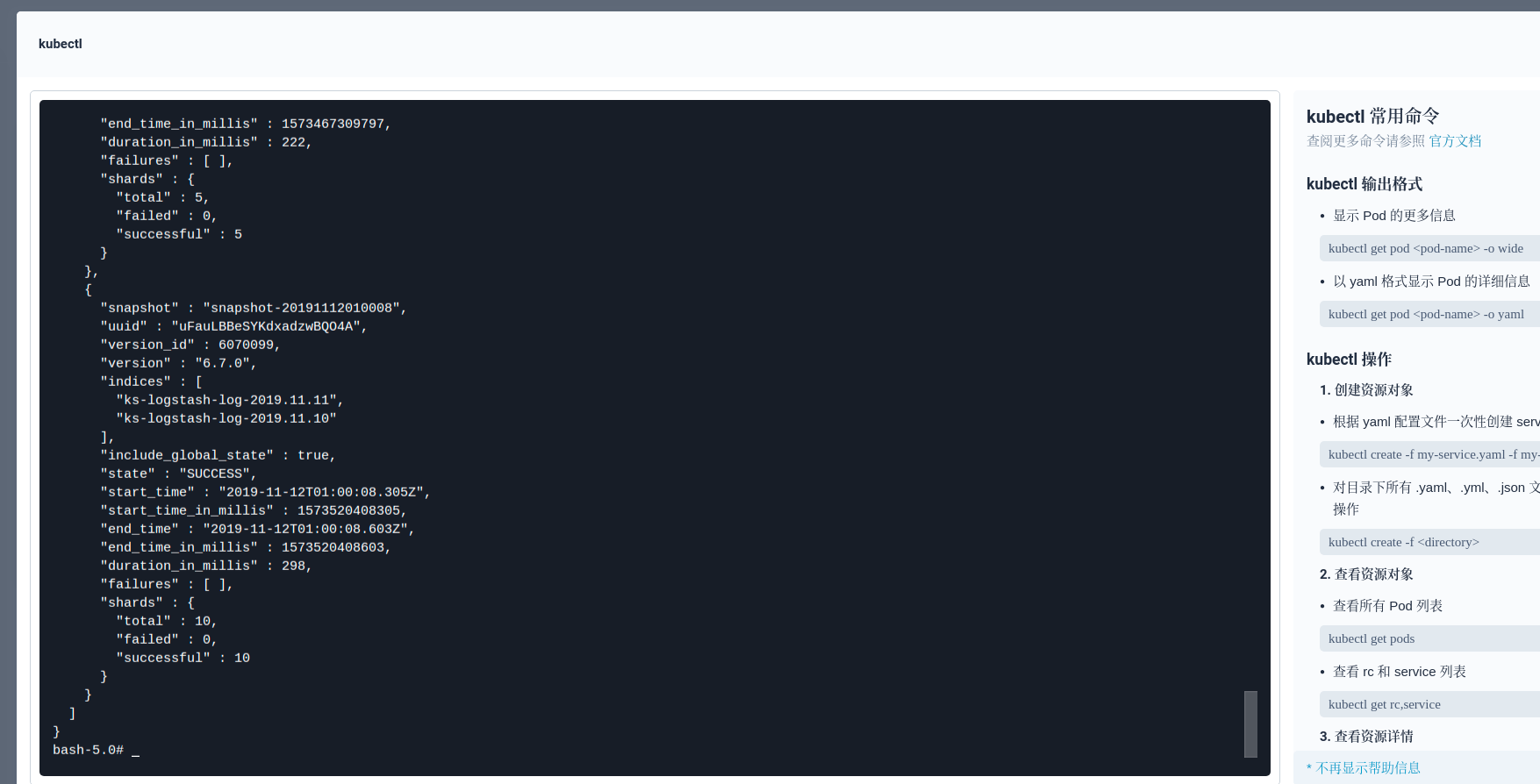 curl -X GET "elasticsearch-logging-data.kubesphere-logging-system.svc:9200/_snapshot/ks-log-snapshots/_all?pretty"