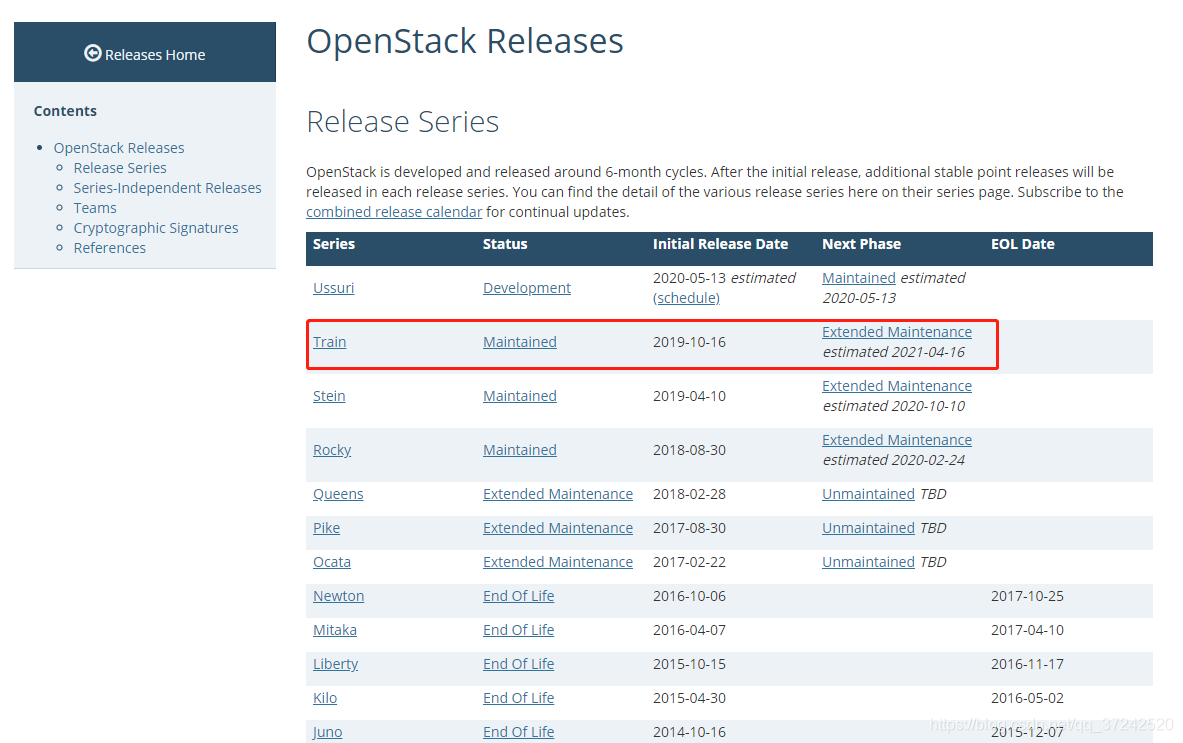 OpenStack是按照A B C D E F G ...的顺序发布版本的,截止到目前19年12月份最新的发行版是 Train