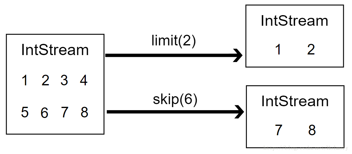 流只能使用(“消费”)一次,一旦调用终断操作,流就不能再次使用,必须重新创建一个流。就像迭代器一样,遍历一遍后,想要再次遍历需要重新创建一个迭代器。