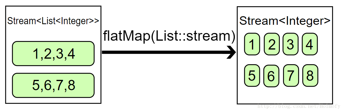 使用传入的Function对象对Stream中的所有元素进行处理,返回的Stream对象中的元素为原元素处理后的结果。