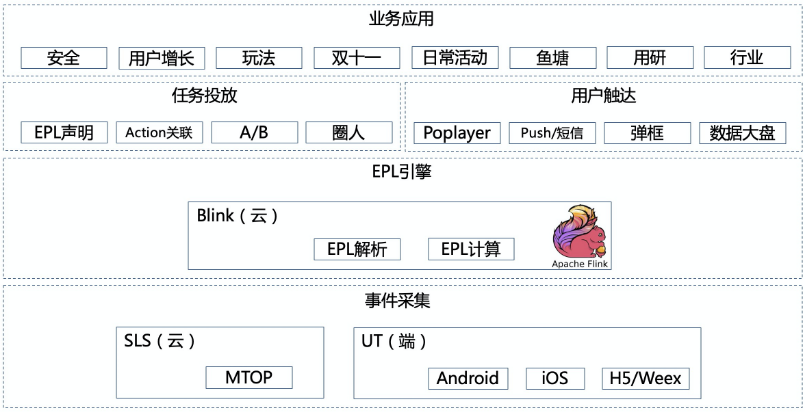 - 第三层为用户触达中心,定义触达策略和通道,将策略实时触达给用户。
