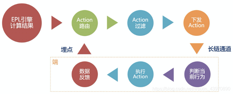 - Action实现层封装了各种通用触达能力实现,目前主要是云端和客户端两种,后续可通过faas模式提供Action灵活快速上线能力。为了保证在客户端执行Action的实时性,我们专门维护了与客户端的长连通道,通过针对性优化,提升通道的数据传输速度和到达率,对端上触达进行了重点保证。