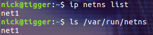 ip netns list 命令显示所有命名的 network namesapce,其实就是显示 /var/run/netns 目录下的所有 network namespace 对象: