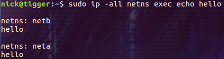 通过 -all 参数我们可以同时在所有的 network namespace 执行命令: