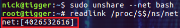 # readlink /proc/$$/ns/net