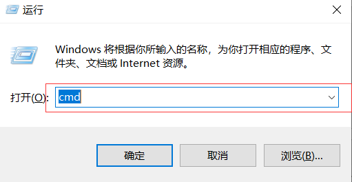 一、Win+R键打开运行输入cmd运行(命令字符不区分大小写)