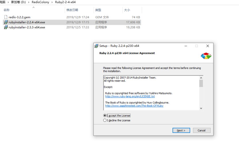 ::将RedisCluster压缩包下的redis-3.2.2.gem文件复制到Ruby22-x64安装包下