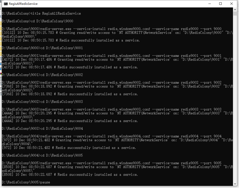 第五步、执行StartCluster.bat脚本,安装redis集群
