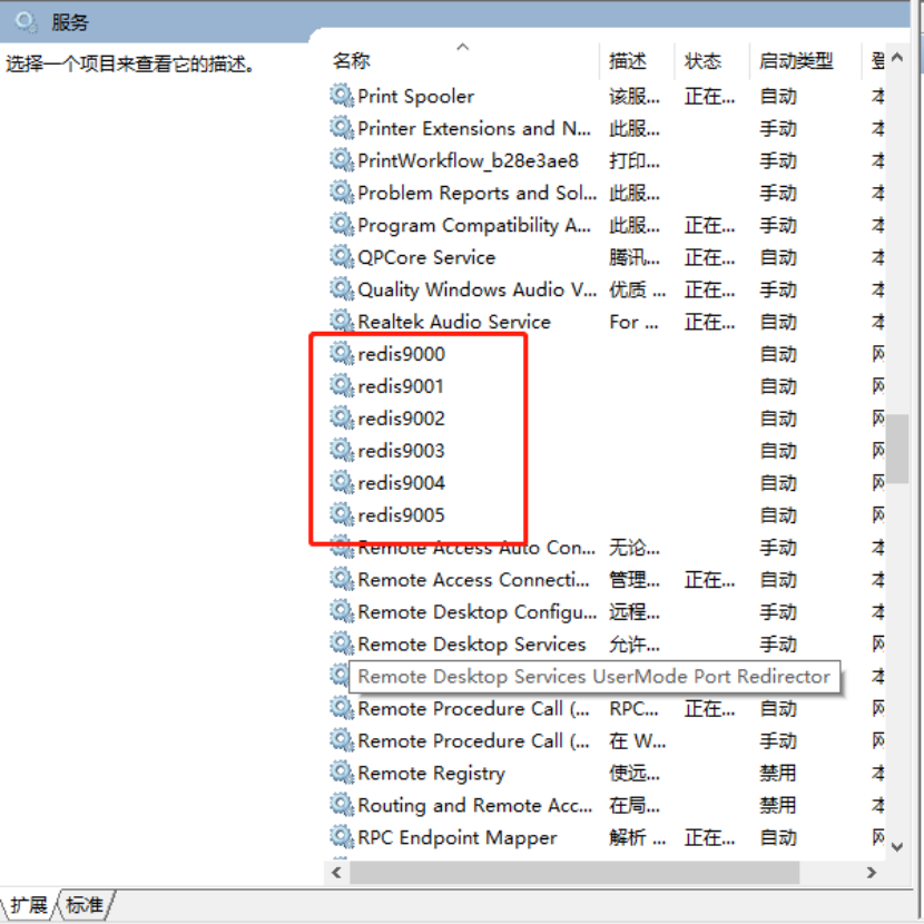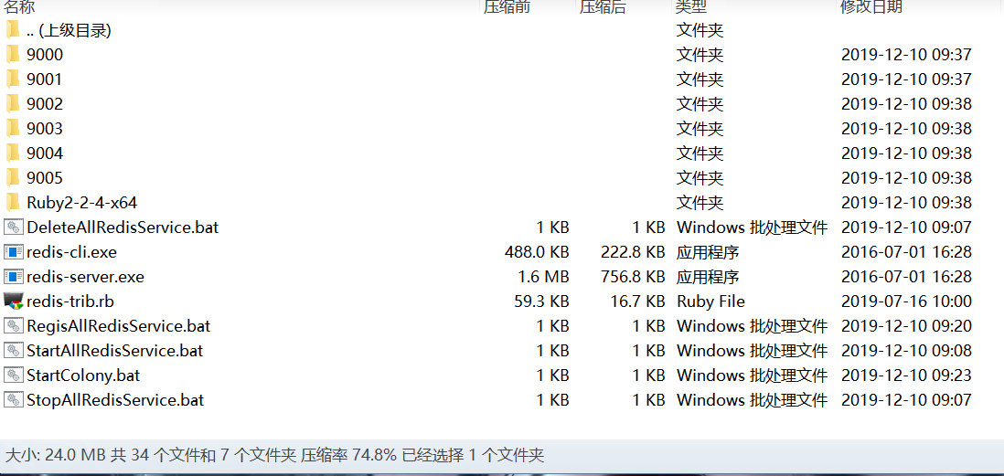 9000、9001、9002、9003、9004、9005这五个文件夹除了redis.windows.conf文件中的端口信息不一样外,其他都相同。相对于Redis文件夹略有删除。