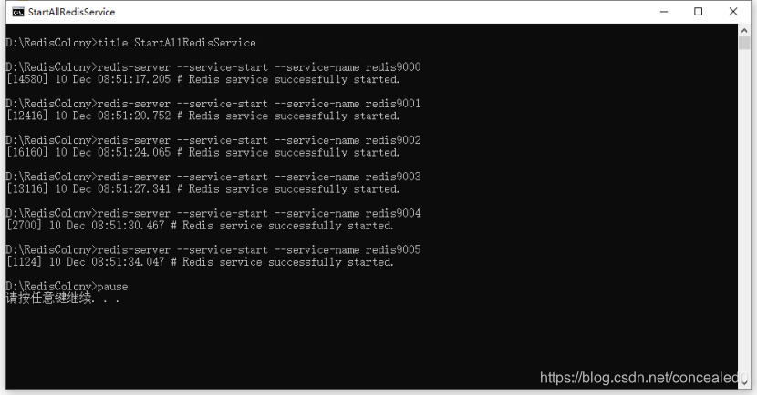 第四步、执行StartAllRedisService.bat脚本,一键启动redis。