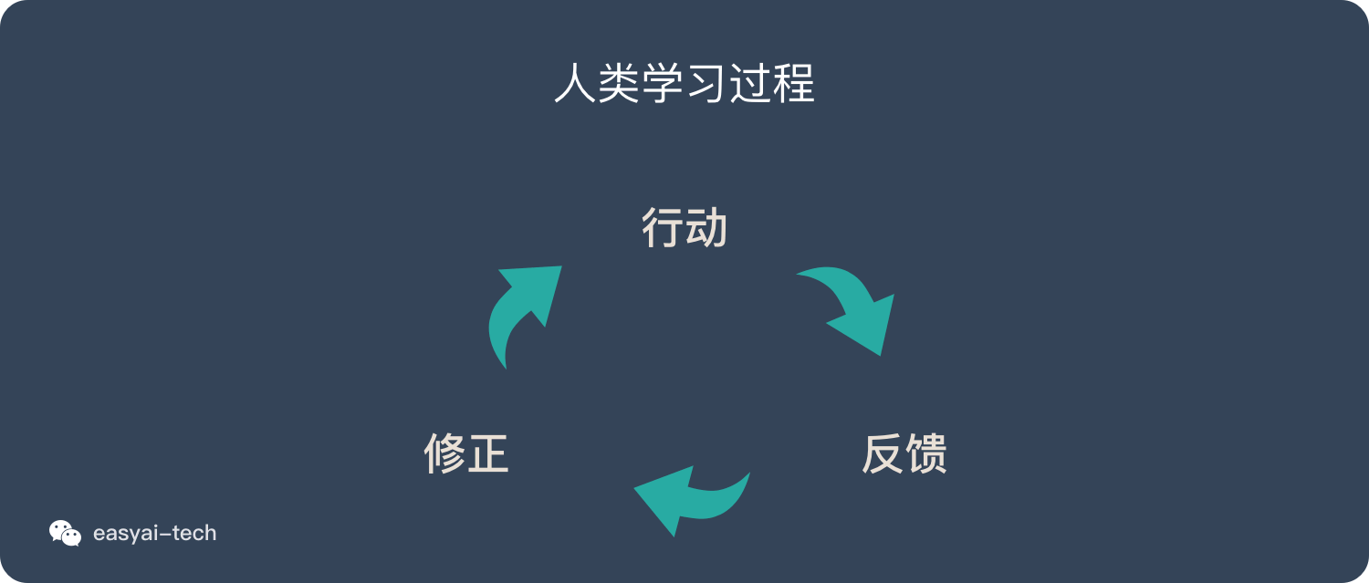 想想我们小时候是怎么学习识字的,一开始出错概率很高,每次出错的时候父母和老师都会告诉我们哪里错了,应该是什么。就是在这种「行动 - 反馈 - 修正 - 再行动」的循环中实现了有效的学习。