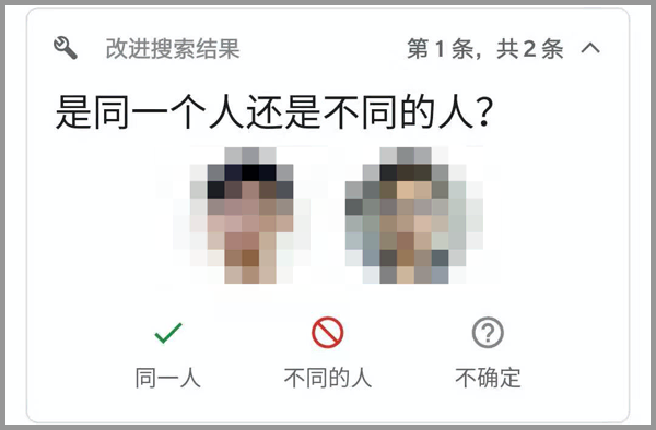 这个时候,Google相册会主动询问用户,2个头像是否是同一个人,如下图: