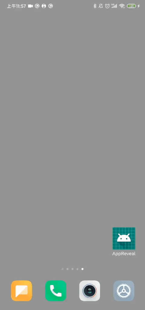 此处所谓完美的揭露动画效果,即我们每次从 Launcher(Android 系统的 Launcher,即系统桌面,按 Home 键会回到的那个地方,也叫启动器。注意 Launcher 在安卓系统中是个单独的 APP,从桌面点击应用图标启动应用的时候 Launcher 会把图标的位置信息通过 intent 一路传到应用的 Launcher Activity,相关知识还请读者自行 Google) 里点击我们的应用图标,不管应用是不是初次启动,不管停留在哪个界面,都能通过揭露动画打开或回到我们应用,在我们的应用中,通过回退按钮(back 键)回到 Launcher 时都能通过反揭露动画收起我们应用(通过 Home 键回到 Launcher 时不应用反揭露动画,因为全面屏手势正在 Android 系统中普及,其会令反揭露动画效果不佳,此时用系统的默认动画最好)。已知揭露动画必须有个圆心,此处这个圆心必然应该是 Launcher 中我们应用图标的中心位置的坐标。前文有提到,这个坐标的相关信息可通过 Launcher Activity 的 Intent 的 getSourceBounds() 方法获得(非 Launcher Activity 通过此方法获取到的只是个 null)。这里会有个问题,即 Launcher 中的图标,其位置可是会随时变化的(由用户手动拖动)!完美的效果必然要能适应坐标随时会变化的启动图标。大概效果会是这样: