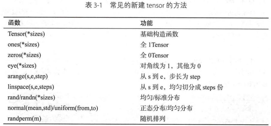 需要注意的是,t.Tensor(*sizes)创建时,系统不会马上分配空间,只会计算剩余的内存是否足够使用,使用到tensor时才会分配,而其他操作都是在创建完tensor后马上进行空间分配。