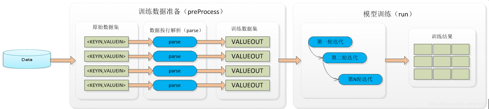 TrainTask调用parse和preProcess方法,将数据从HDFS中读取,并组装成多个LabeledData组成的DataBlock