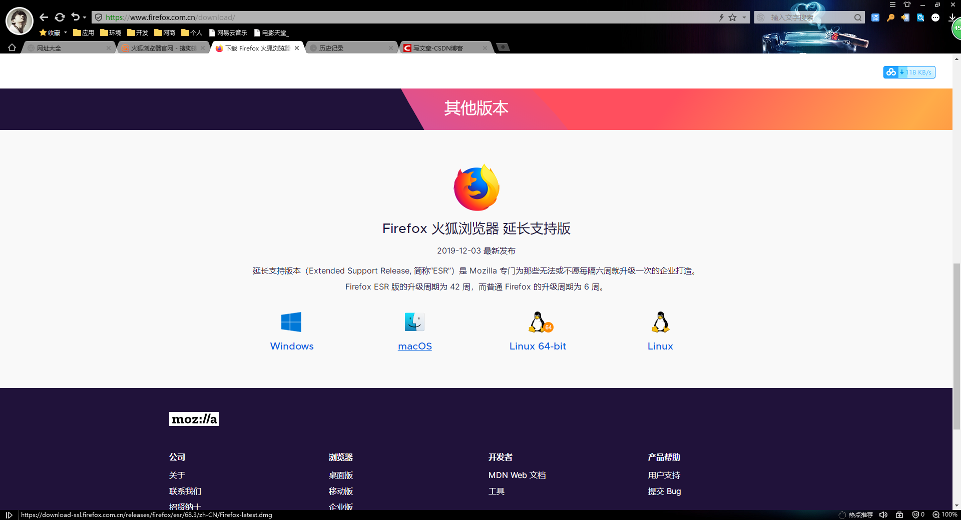 1.先去官网下载最新版本Firefox:https://www.firefox.com.cn/download/