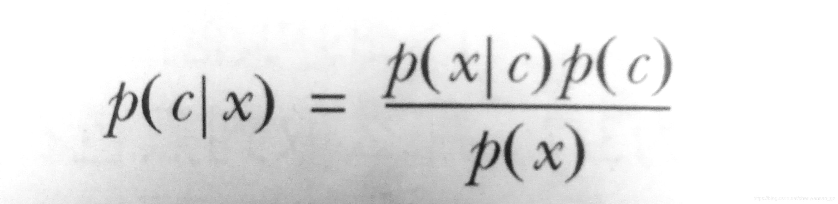 另一种有效计算条件概率的方法称为贝叶斯准则。贝叶斯准则告诉我们如何交换条件概率中的条件和结果,即如果已知P(x | c),要求P(c | x)。其公式为: