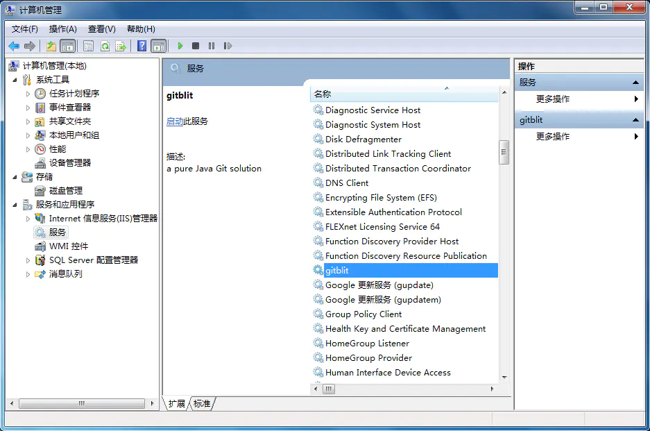 2.在服务器的服务管理下,就能看到已经存在的gitblit服务了。