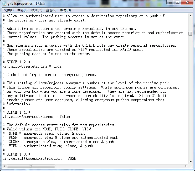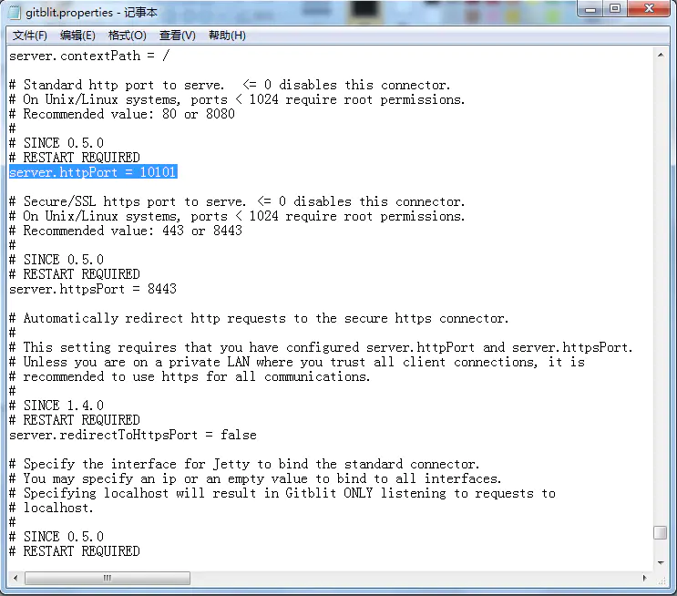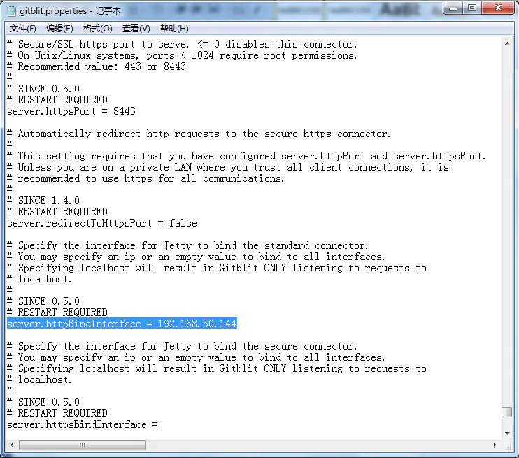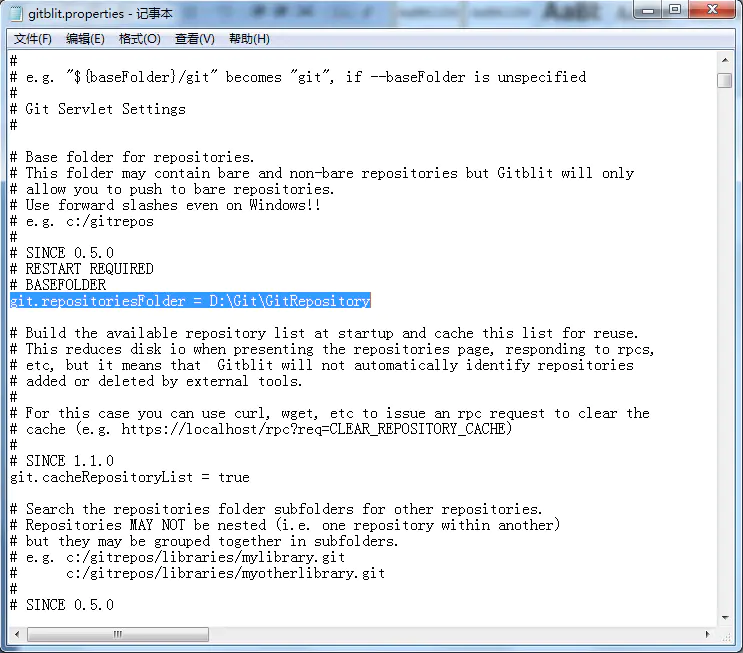 找到Git目录下的data文件下的gitblit.properties文件,“记事本”打开。