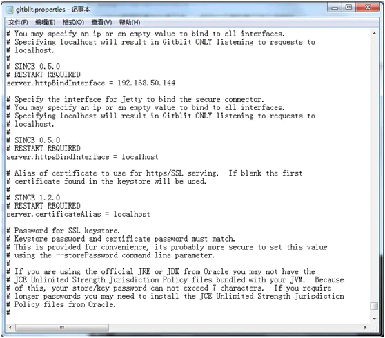 第八步:配置gitblit.properties 文件。