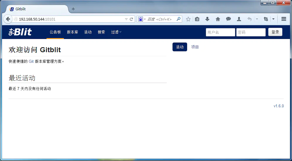 第十步:在浏览器中打开,现在就可以使用GitBlit了。