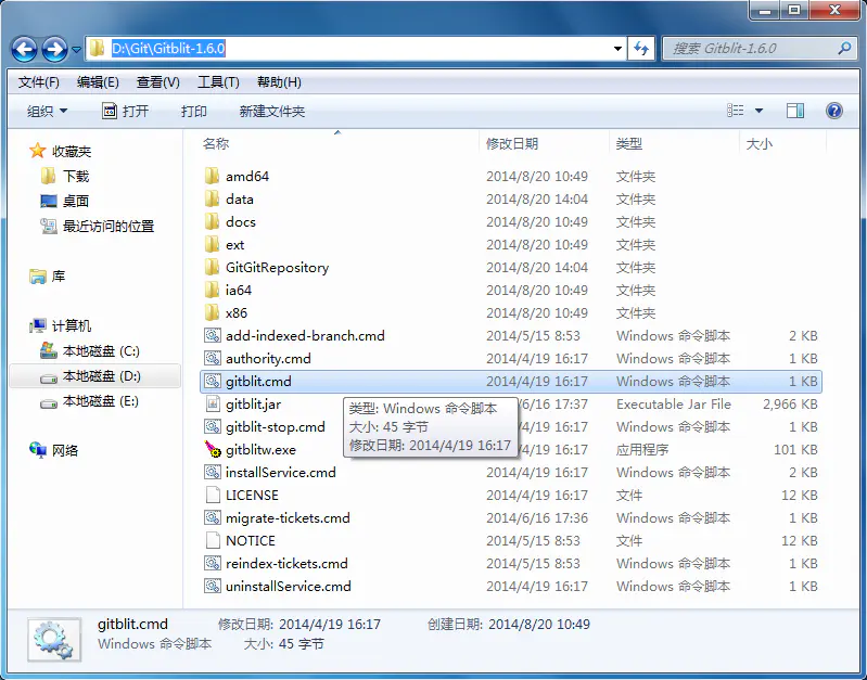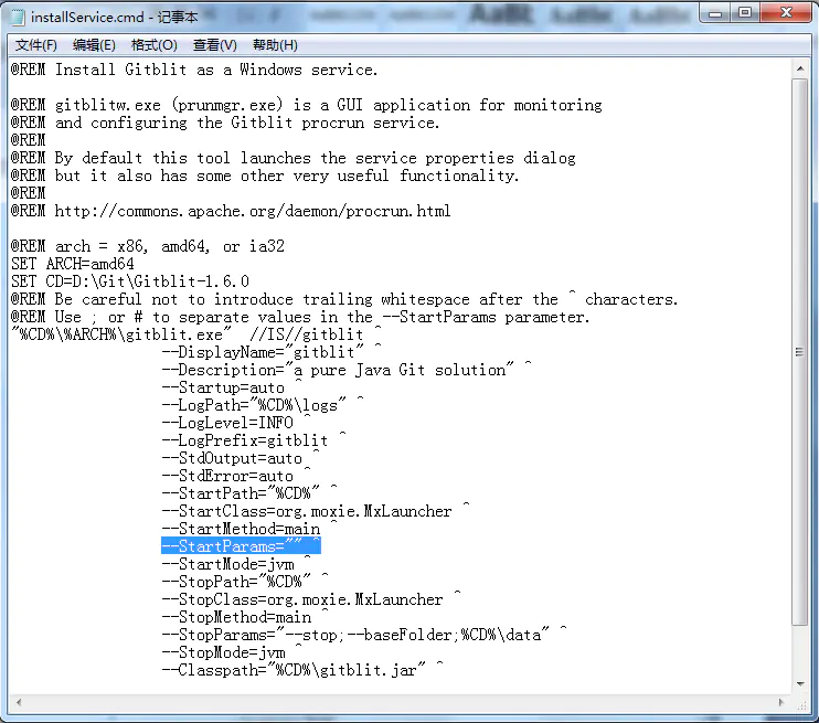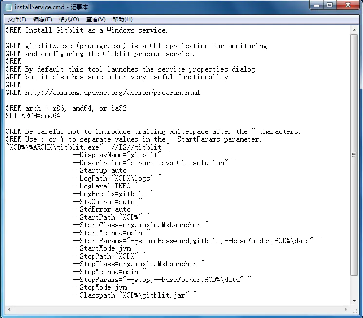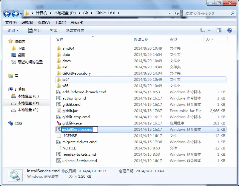 在Gitblit目录下,找到installService.cmd文件。