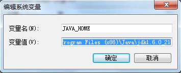 变量值:D:\Program Files (x86)\Java\jdk1.6.0_21【具体要根据你自己的安装路径,我的是安装在D盘的】