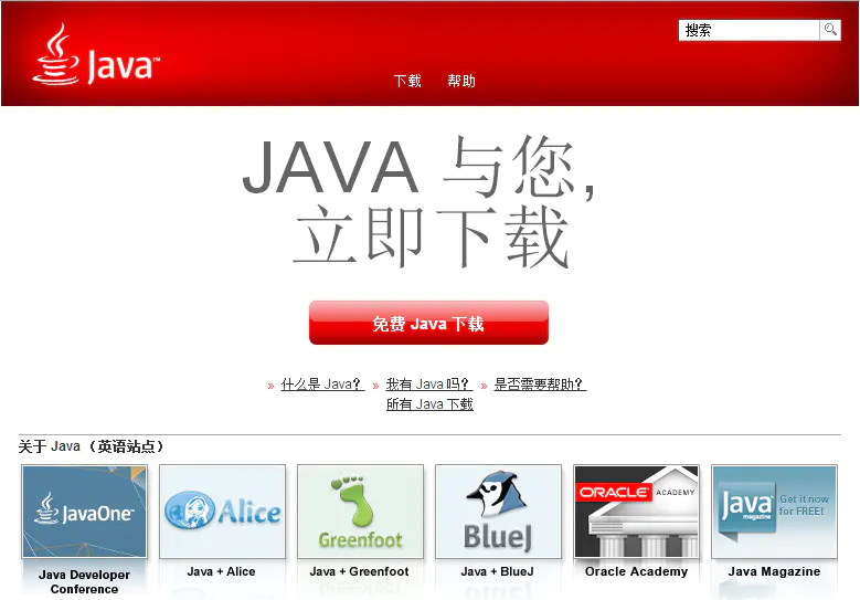 第一步:下载Java,下载地址:http://www.java.com/zh_CN/