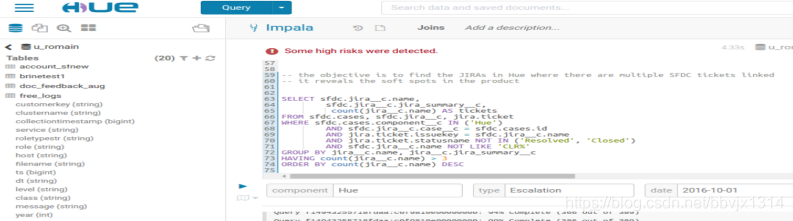 Hue提供的这些功能相比Hadoop生态各组件提供的界面更加友好,但是一些需要debug的场景可能还是要使用原生系统才能更加深入的找到错误的原因。