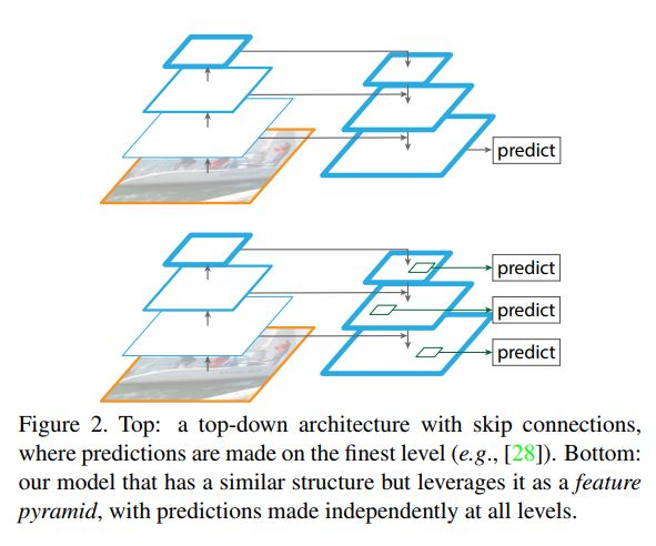 FPN是一种利用常规CNN模型来高效提取图片中各维度特征的方法。在计算机视觉学科中,多维度的目标检测一直以来都是通过将缩小或扩大后的不同维度图片作为输入来生成出反映不同维度信息的特征组合。这种办法确实也能有效地表达出图片之上的各种维度特征,但却对硬件计算能力及内存大小有较高要求,因此只能在有限的领域内部使用。