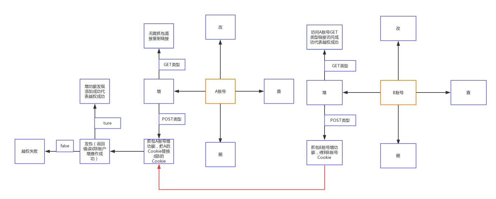 一般测试时,可以注册两个小号测试,更方便,大概流程图如下: