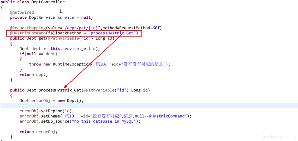 @HystrixCommand(fallbackMethod = "processHystrix_Get")
