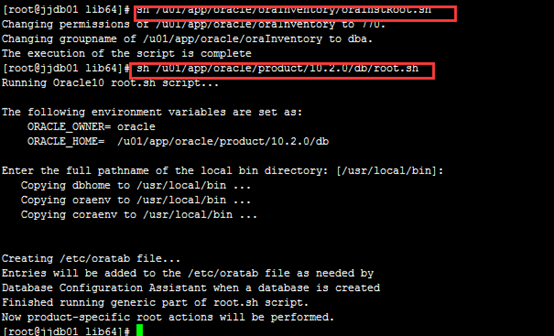 此处注意一定要使用oracle用户登录,否则可能导致文件权限不正确,需使用chown命令修改文件所属用户和组。