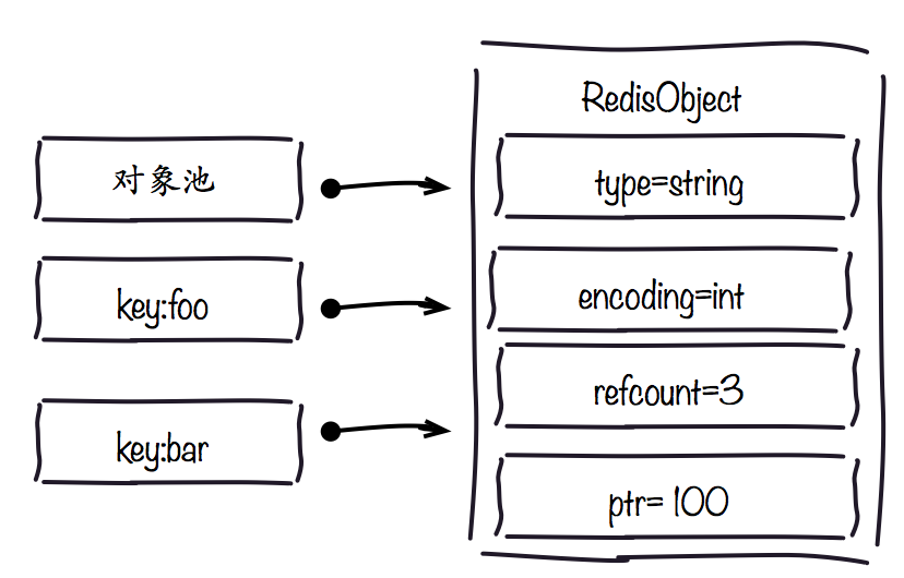 redis> set foo 100 OK redis> object refcount foo (integer) 2 redis> set bar 100 OK redis> object refcount bar (integer) 3 |