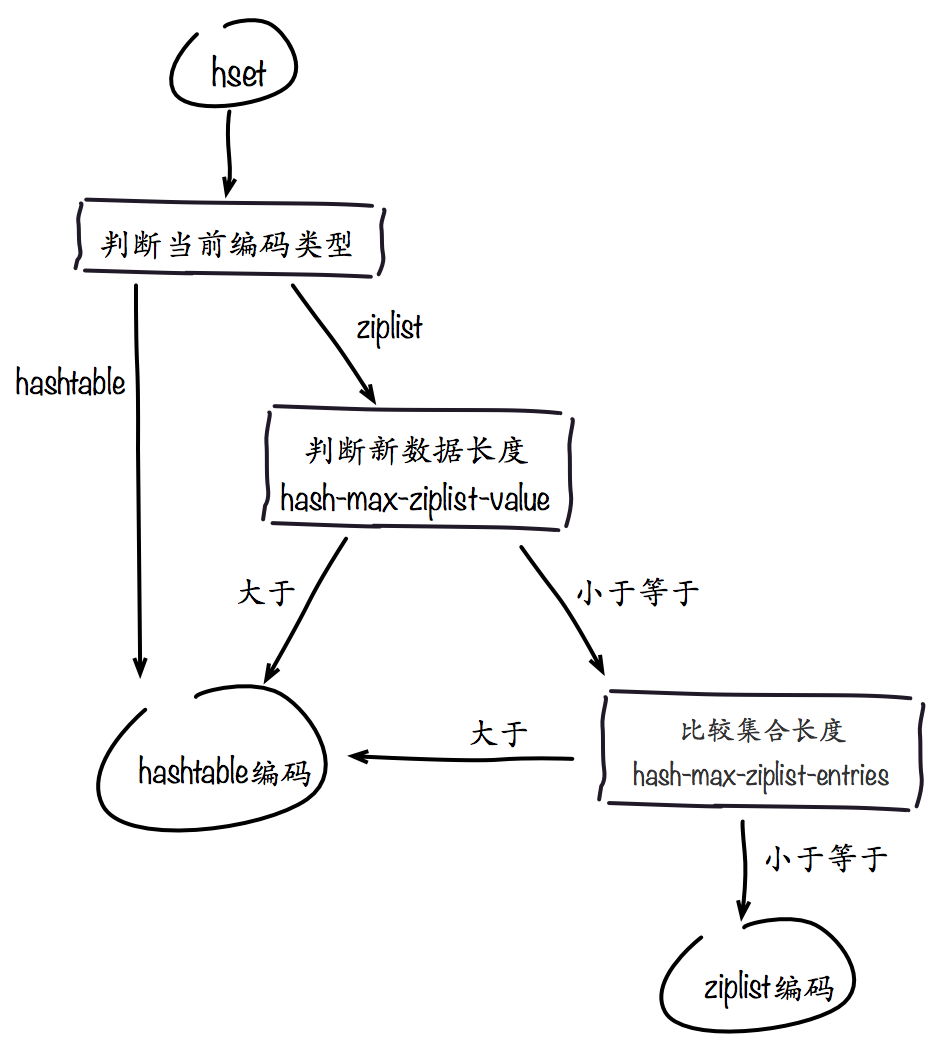 掌握编码转换机制,对我们通过编码来优化内存使用非常有帮助。下面以hash类型为例,介绍编码转换的运行流程,如下图所示。