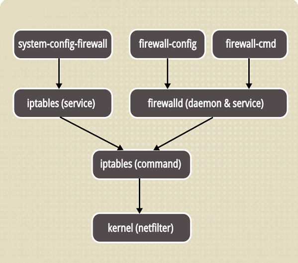 netfilter是基于内核,在centos7以前版本,防火墙是指iptables,它是一个服务,iptables服务是用来管理加载、调用iptables命令。在centos7版本,叫firewalld,它比iptables更加丰富,同样也可以管理iptables命令设置好的规则。