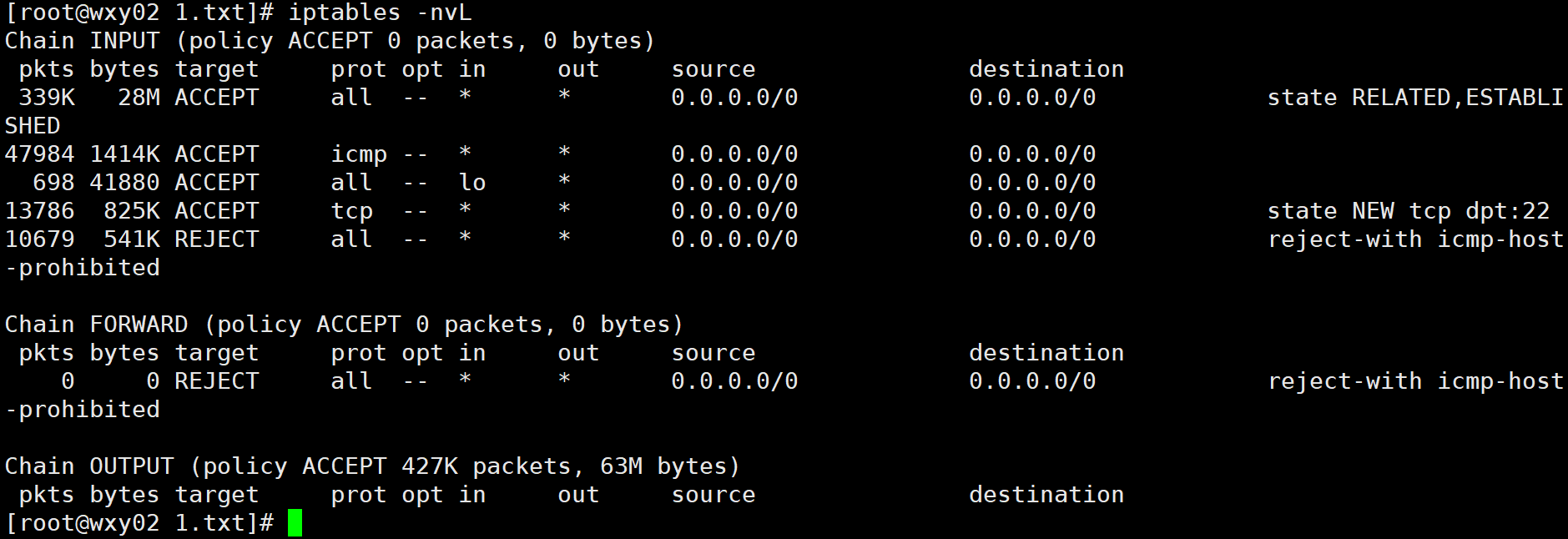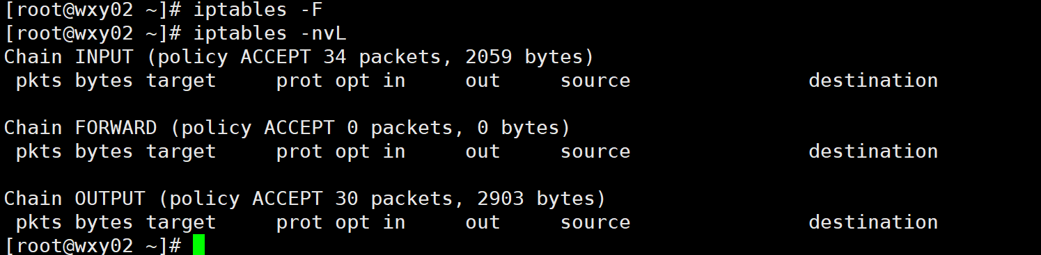清空后未保存规则配置文件(/etc/sysconfig/iptables),服务重启或系统重启后,防火墙服务会重新加载规则配置文件中的原有规则。