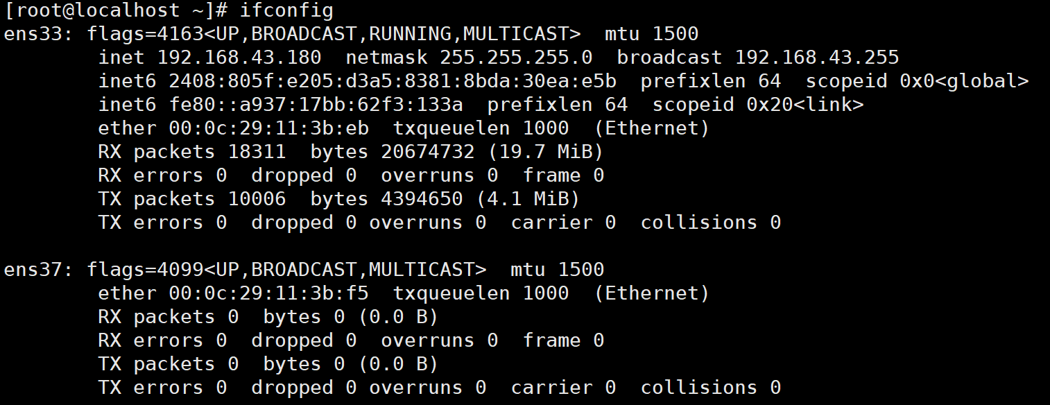 - 按照以上步骤给B机器添加一个ens37网卡,并把ens33网卡停掉