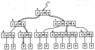 (1)首先从根节点a开始,因为 a 节点中只有一个关键字35,且给定值47 > 关键字35,则若存在必在指针A1所指的子树内。