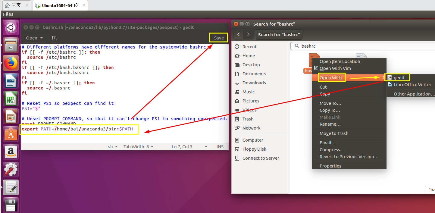 (2)、gedit图形化界面编辑(类似Windows的记事本)