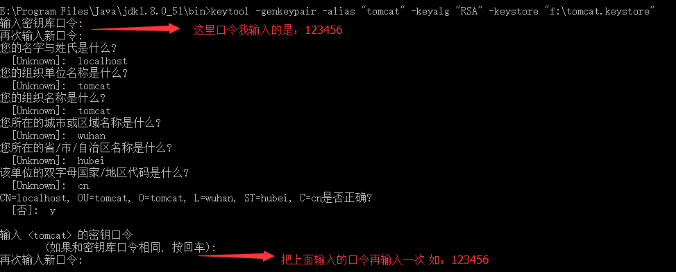 keytool -genkeypair -alias "tomcat" -keyalg "RSA" -keystore "f:\tomcat.keystore"