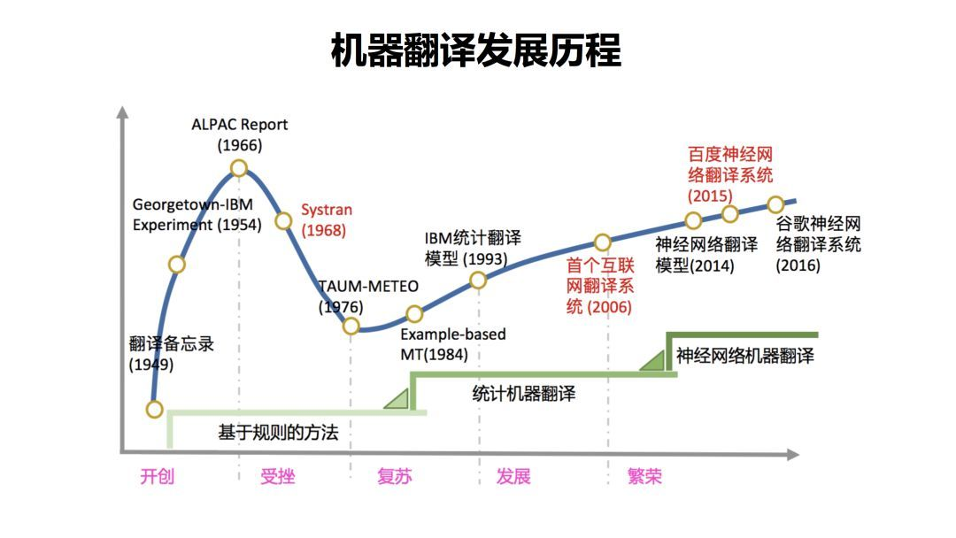 随着深度学习技术的发展,大约从2014年神经网络翻译方法开始兴起。2015年百度发布了全球首个互联网神经网络翻译系统。短短3、4年的时间,神经网络翻译系统在大部分的语言上已经超过了基于统计的方法。