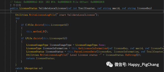 回到ValidateLocalLicense方法再简单看下两个判断,文件存在时自然应该是验证内容,我们再看下不存在的情况做了什么,进入method_6: