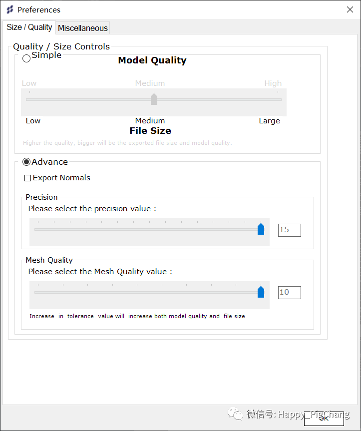 1. 导出设置界面:可以设置导出参数,主要是精度和法线,及翻转设置。可以通过设置精度多次导出实现导出带LOD(level of detail)的模型,当然这不是本文关注的重点。