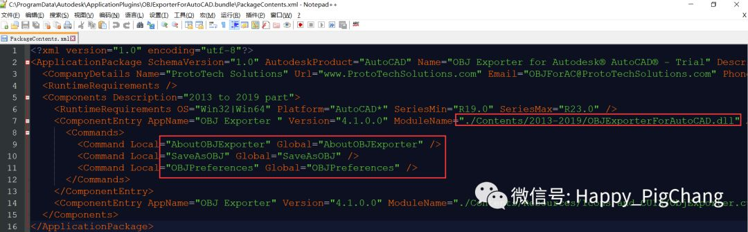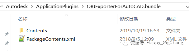 开打插件安装目录C:ProgramDataAutodeskApplicationPluginsOBJExporterForAutoCAD.bundle