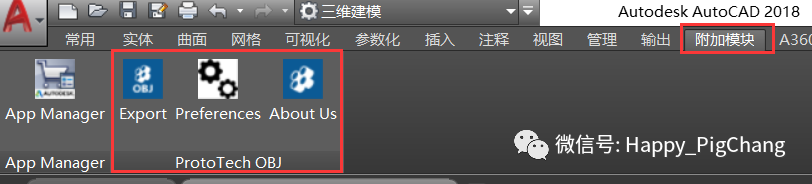 OBJ Exporter是由一家以插件开发为主的数据公司开发,本文逆向分析的是OBJ Exporter的试用版,正式版需要支付$99! OBJ Exporter的使用非常简单,几乎是一键导出。安装后在CAD的附件模块: