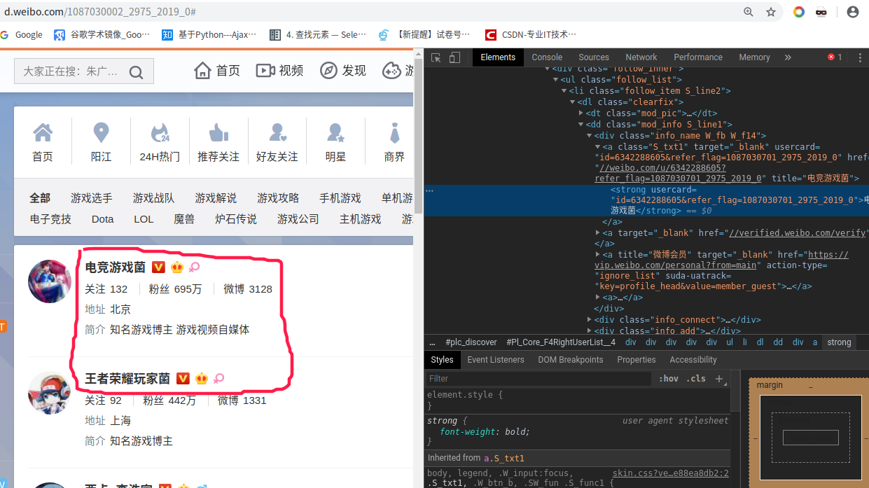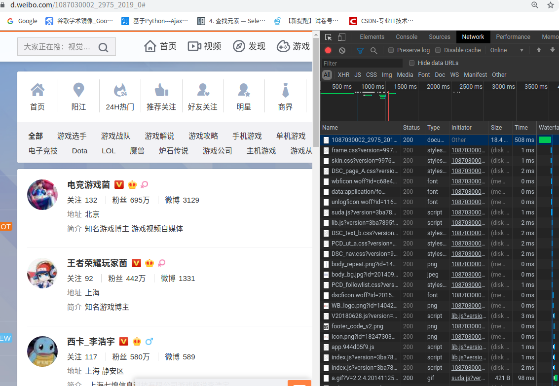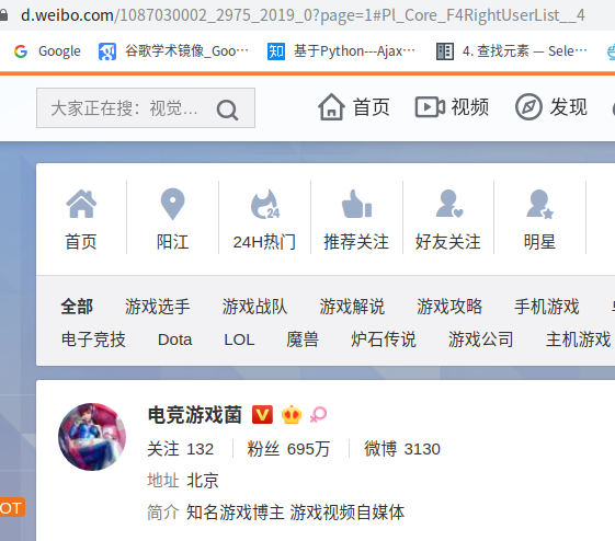 爬取微博游戏名人信息
