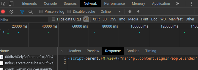 我们现在的网址不是我们所要爬取数据的真正网址,我们打开f12,找到Network,点击All,f5刷新下,看到如下的内容