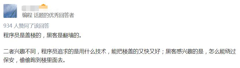 知识专注的方向不同而已,也并不一定就能说明黑客比程序员“高”。