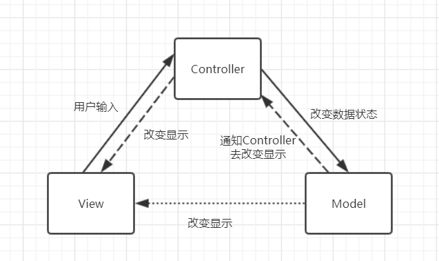 - Model层与View层之间没有直接交互,数据改变后先通知C层,由C层去完成视图刷新。